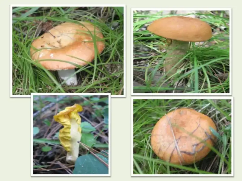 (На слайде фото: 1. Сыроежка, 2. Подберезовик, 3 Спатулярия, 4. Рыжик)