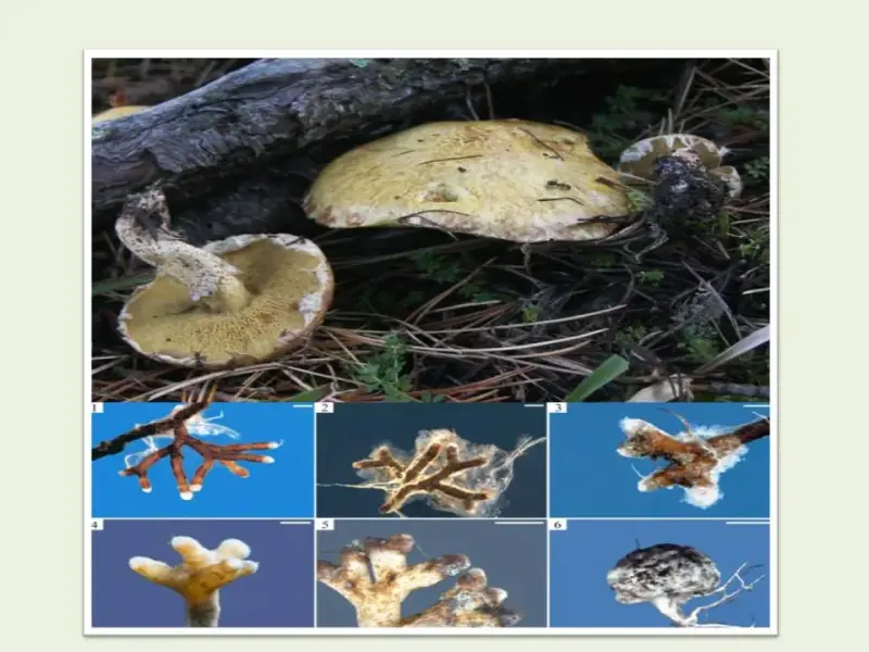 Гифы грибов, развивающихся в почве, оплетают, как паутина, корни деревьев и кустарников, образуя микоризу. Микориза - это симбиоз.