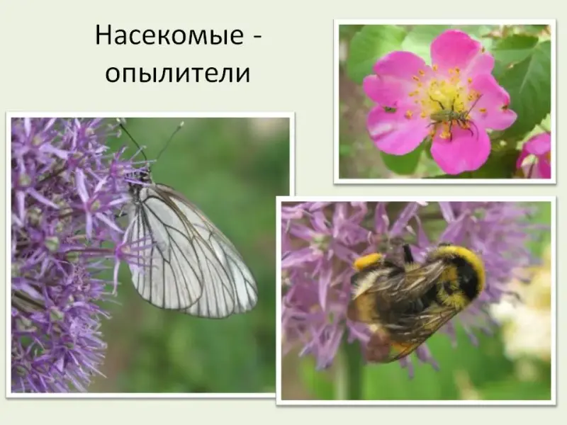 И насекомых - опылителей, пчелы, шмели, бабочки, некоторые жуки.