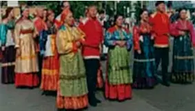 Русский орнамент, содержит орнаментальную композицию, изображающую женские фигурки. В русских орнаментах присутствуют символы солнца, плодородия, пожелания счастья, материнства, изображались деревья, женские фигурки в сопровождении коней и птиц.
