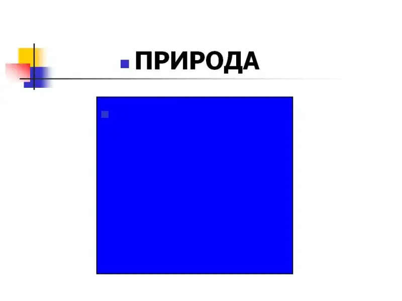 Педагог: Посмотрите, ребята, на экране квадратик синего цвета. Это значит, что на занятии мы будем знакомиться с той частью окружающего мира, которая называется
