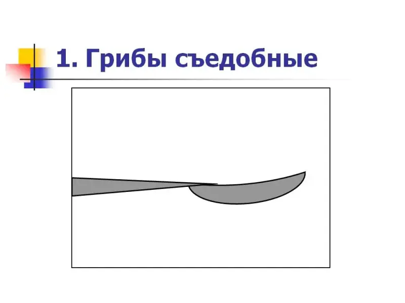 Педагог: Присаживайтесь на свои места и посмотрите на выданный вам лист «Рабочей тетради»: под цифрой 1 - группа съедобных грибов.