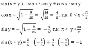 в) Вычислите: sin (x + y), если известно, что
