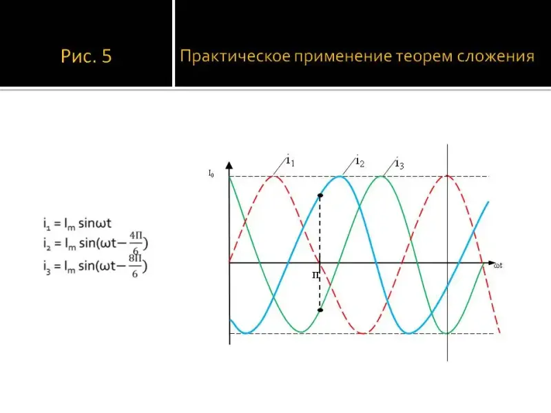 На практике часто приходиться двухфазный или трехфазный ток направлять в один проводник. При этом возникает, как показал опыт, "суммарный" переменный ток, мгновенная сила которого равна сумме