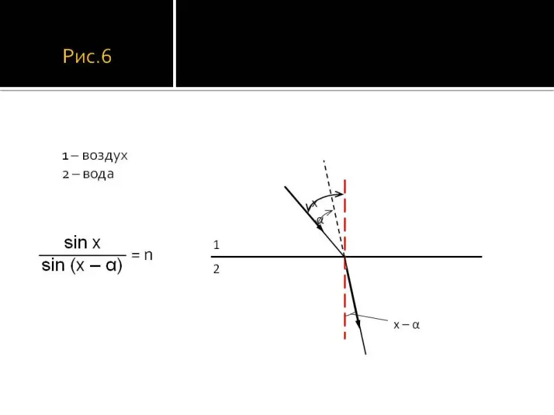 Если коэффициент преломления равен n, а угол падения больше угла преломления на αо, то отыскание искомого угла падения х сводится к решению уравнения sinx/sin(x - α) = n , которые нельзя