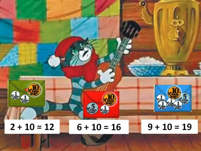 - Сегодня у нас в гостях герои сказки Э.Успенского «Трое из Простоквашино». Они нам помогут научиться прибавлять однозначные числа к числу 10.