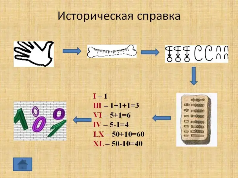 Записывали числа поначалу совсем просто: делали зарубки на куске дерева или кости. На этой кости тридцать тысяч лет назад сделаны нарезки, они показывают, что уже тогда наши предки умели не только считать, но и записывать результаты счета!