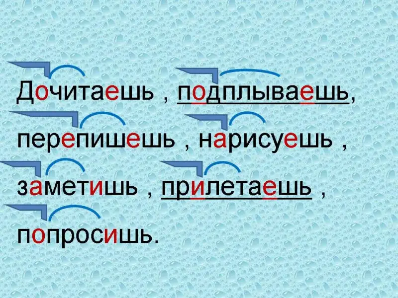 Дочитаешь, подплываешь, перепишешь, нарисуешь, заметишь, прилетаешь, попросишь. - глаголы все 2 лица, ед.ч - Время и спряжение - Мы получили однокоренные глаголы, другие слова |