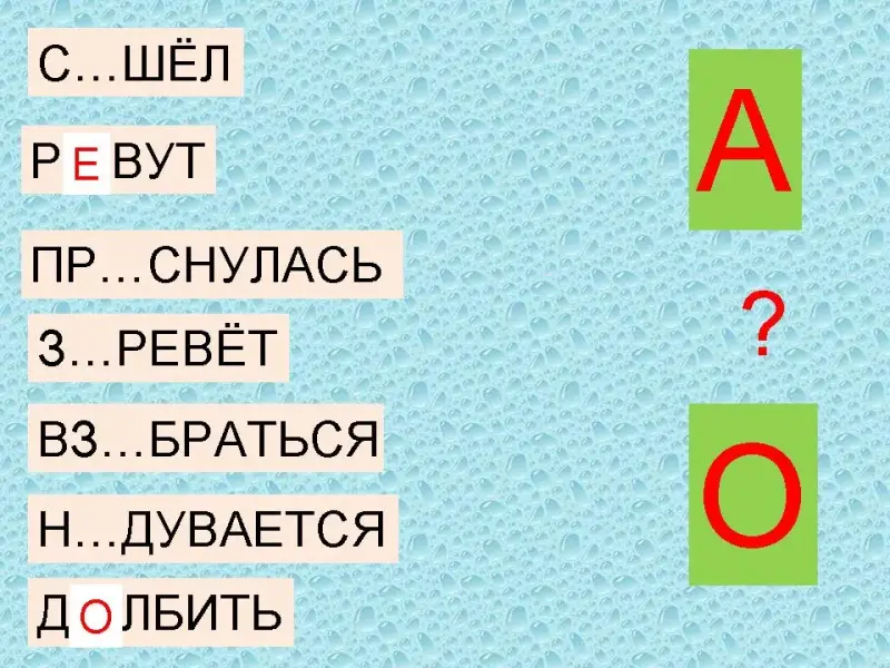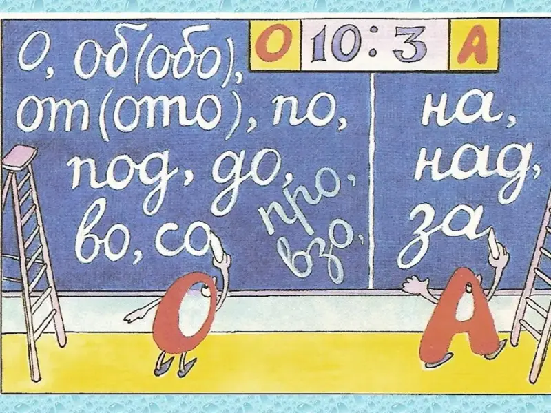 Рассказывает ученица, в роли сказительницы: «Жили-были две буквы -Аи О. Однажды решили они поделить между собой все приставки. А как делить? Стали буквы их мелом на доске