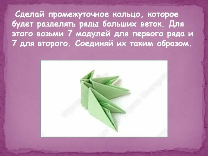 2 Ученица: Модульное оригами - модное направление древнего искусства создания фигурок из бумаги. Отличие этой техники от традиционного оригами в том, что поделка выполняется не из одного листа бумаги, а из нескольких одинаковых частей - модулей. Отдельные модули могут самостоятельно сложить даже маленькие дети, а вариантов их соединения - бесконечное множество. Легкое движение рук - и модули превращаются в зверей, птиц, растения, корабли и даже рыцарские замки. К тому же, для модулей подходит любая бумага, даже листы из старых журналов. А как приятно делать крупные и сложные поделки всей семьей!
