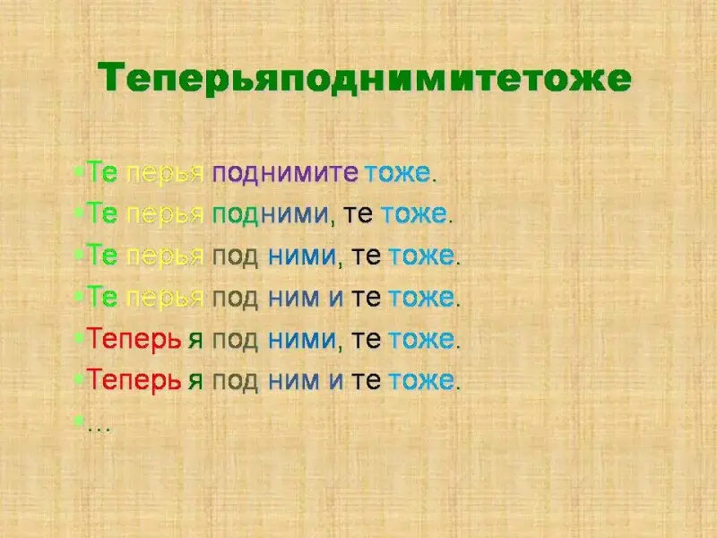 4. Меняя пословное деление, имеем каждый раз новый смысл у предложения.