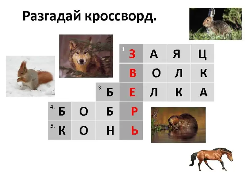 Сегодня мы познакомимся с диким животным. А с каким - вы узнаете, разгадав кроссворд.