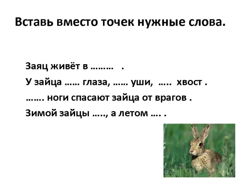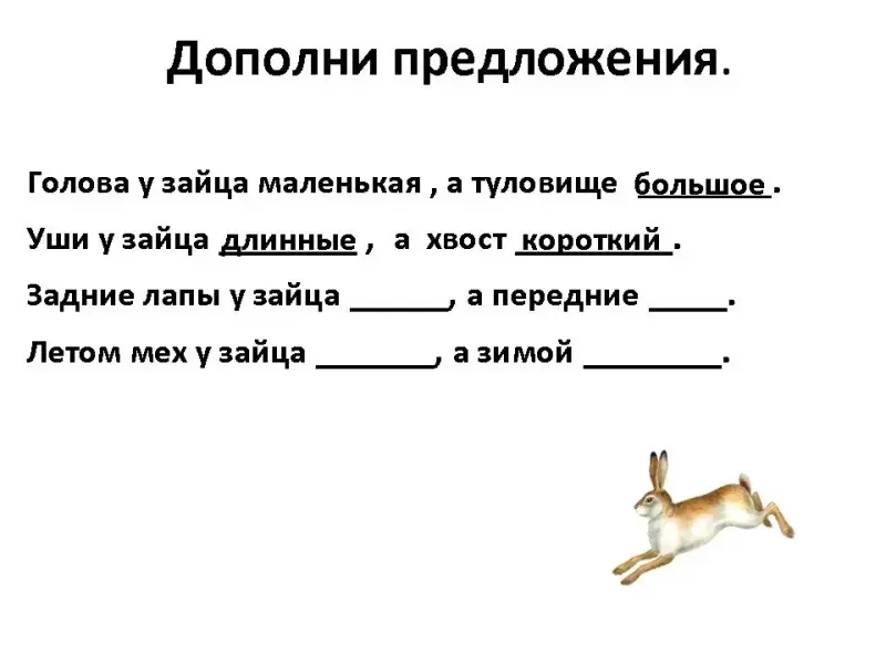 б) Игра «Продолжи предложение о зайце» (слайд 6)