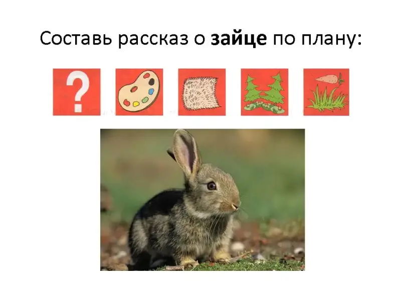 г) Упражнение в составлении рассказа о зайце по опоре-схеме. (слайд 9)
