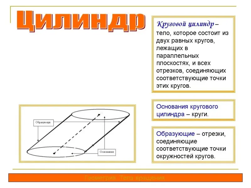 - понятие цилиндрической поверхности и кругового цилиндра; <слайд 2>