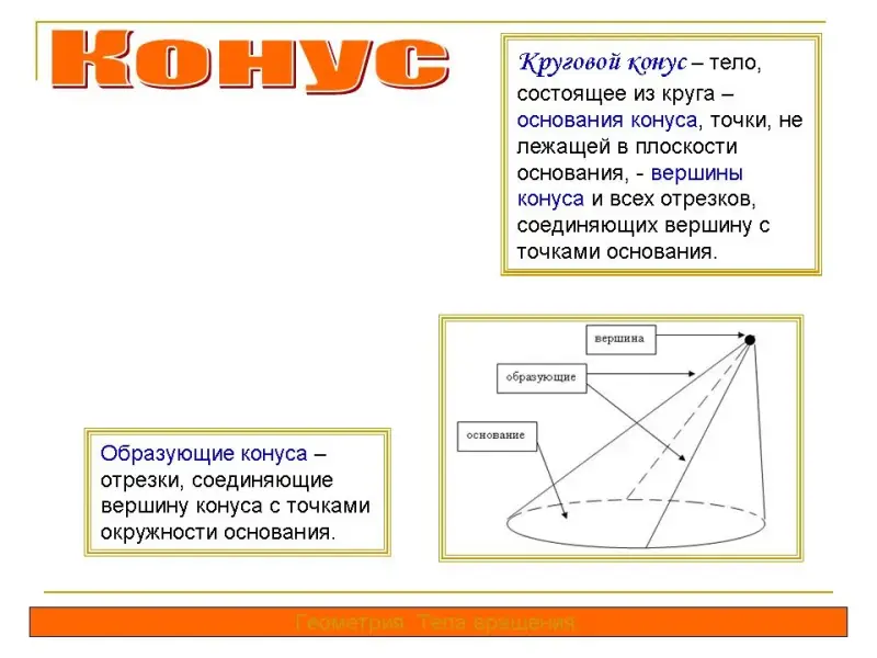 е) объясните, что собой представляет прямой конус;
