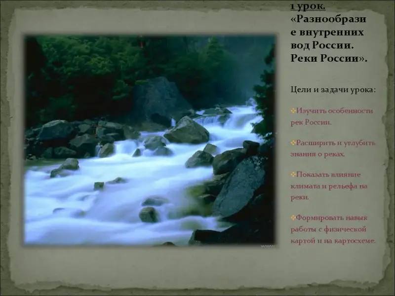 Разнообразие внутренних вод России. Реки. 8-й класс