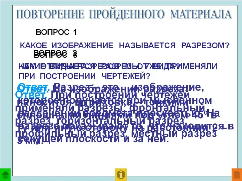 Информационные технологии на уроках черчения. Урок-презентация по теме "Разрезы"