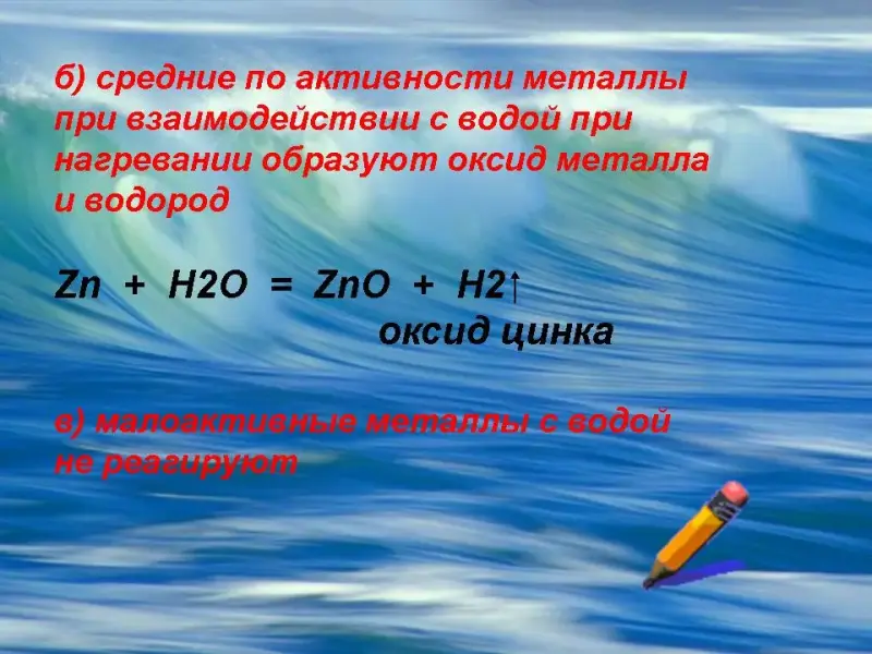 Учитель: При нагревании возможно взаимодействие воды и с менее активными металлами, например с магнием.
