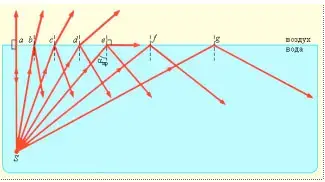 Если падающий луч направлен из оптически более плотной среды в оптически менее плотную (например, из воды в воздух), n2,1<1. Это означает, что в этом случае угол преломления