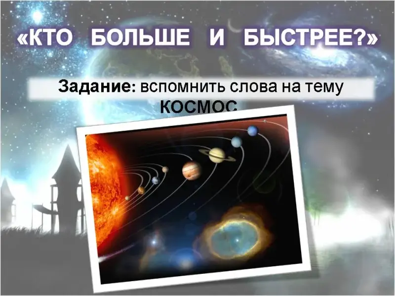 4. Кто больше и быстрее? Вспомнить слова на тему КОСМОС.
