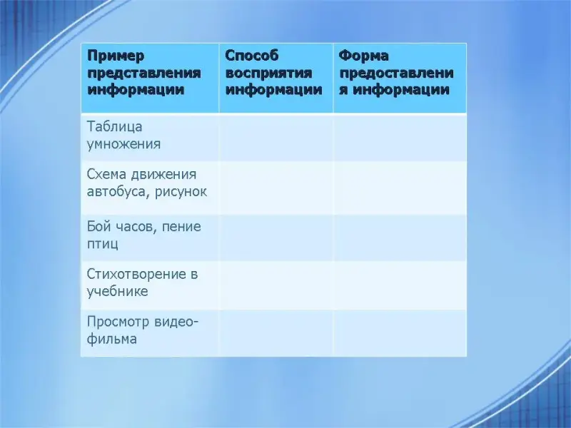 Учащиеся приводят примеры способов предоставления информации. Подводим итог сказанному, выделяем виды информации по способу предоставления. (Слайд 11)