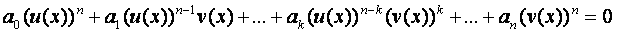 называют однородным уравнением степени n относительно u(x) и v(x). Поделив обе части уравнения на (v(x))n, можно с помощью замены