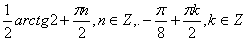 Ответ: - arctg0,5+πn, - 0,25π+πk, ![]()