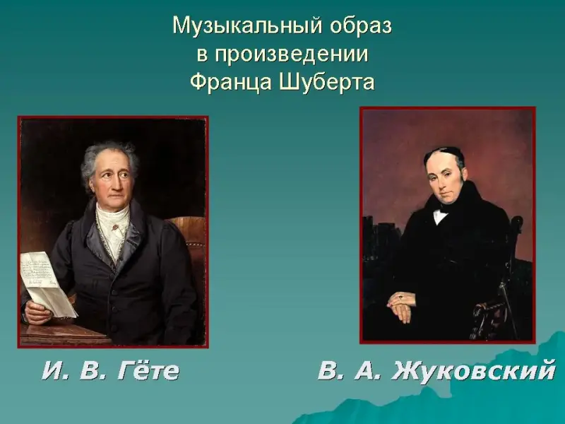 - Ф. Шуберта зачаровывала поэзия В. Гёте. Она волновала, пленяла фантазию, ум, душу молодого композитора. Балладу «Лесной царь» Шуберт сочинил, когда ему было всего 18 лет.