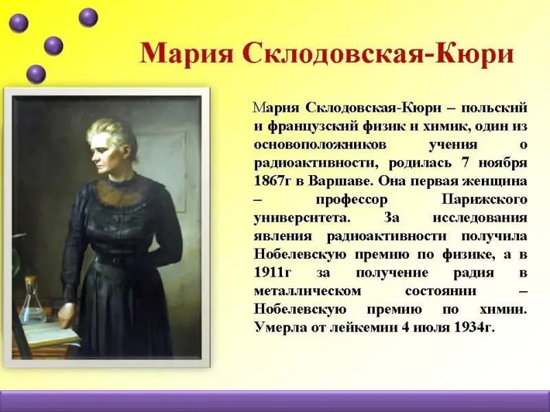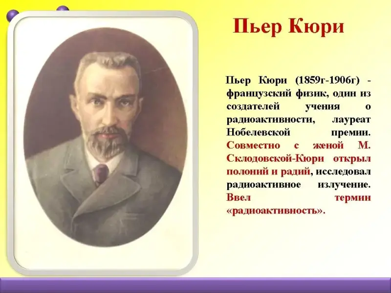 №3 о П.Кюри) и показывают слайды № 3 (о А.Беккереле), № 4 (о М.Склодовской-Кюри), №5 (о П.Кюри).