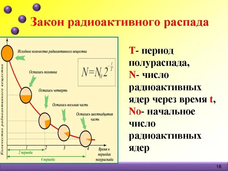 - Как же выглядит закон радиоактивного распада? Слайд №16.
