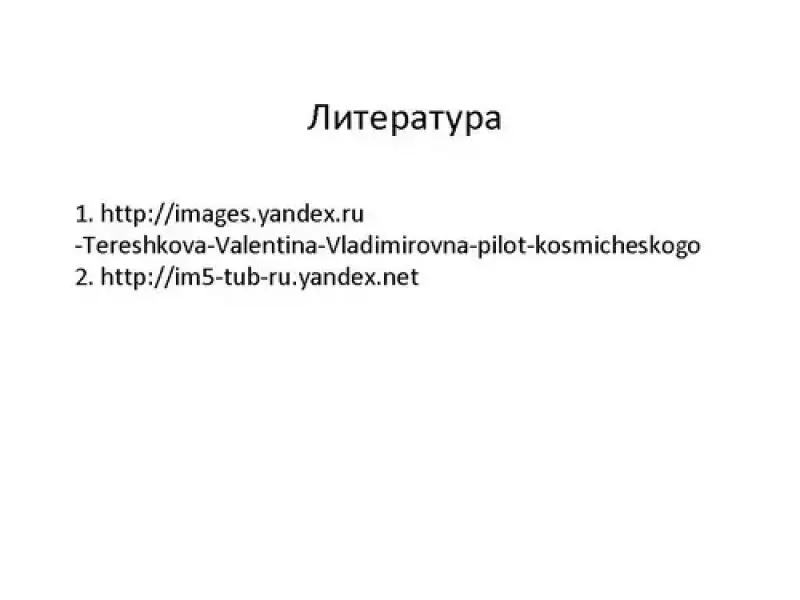 - Презентация "Первая женщина Вселенной", посвящённая юбилею В. В. Терешковой, была включена в план проведения недели физики. Текст к слайдам можно найти в презентации по адресам, указанным в литературе. Презентация 1.