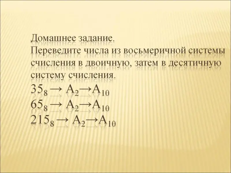 Домашнее задание: переведите числа из двоичной системы счисления в десятичную и сделайте проверку.