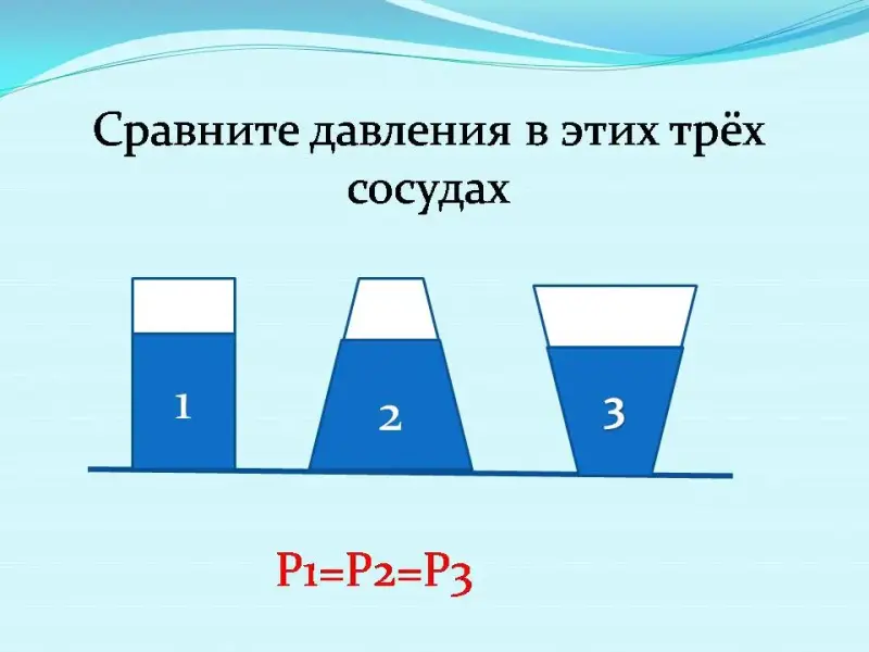 - Сравните давления в этих трёх сосудах