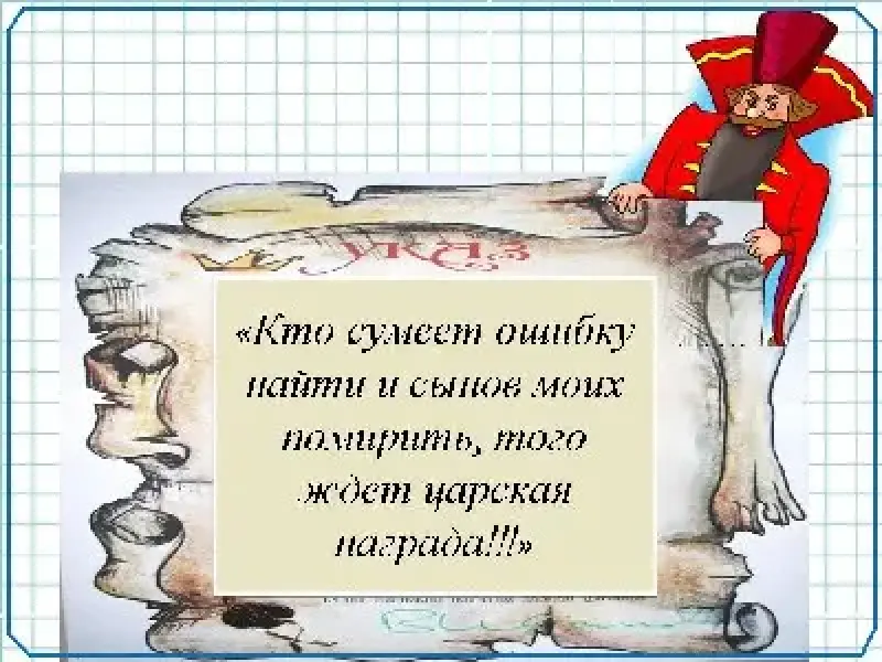 указ "Кто сумеет ошибку найти и сынов моих помирить, того ждёт царская награда!!!" А чтобы ошибку найти, надо, сначала, испытания пройти.