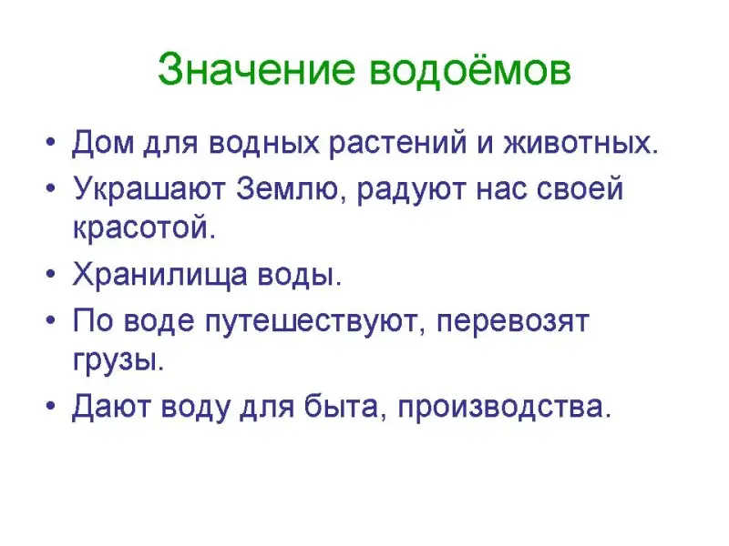 - Каково значение водоёмов?