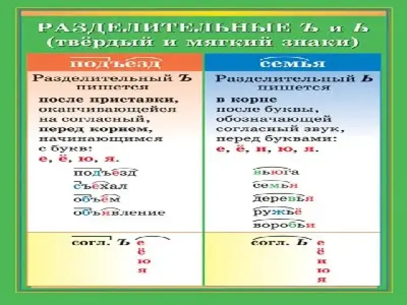- Конкретизация и систематизация представлений учащихся об употреблении разделительных мягкого и твердого знаков и правописании слов с ними.