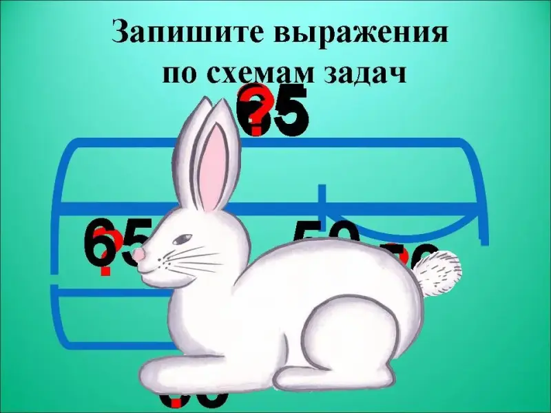4. ЗАЯЦ: - Чтобы догнать зайца, надо быстро записать выражения по схемам различных типов задач. (СЛАЙД 8).