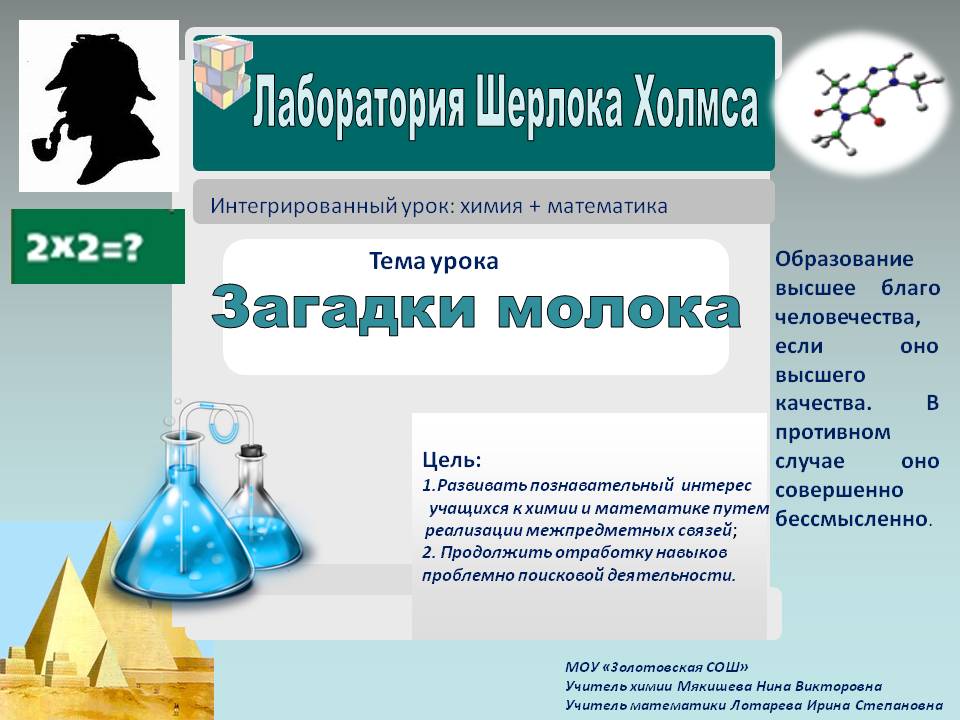 Интегрированный урок "химия + математика" по теме "Загадки молока"