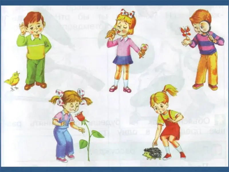 - Что узнают дети? (Дети, с помощью органов чувств, различают звуки, вкус, запах, форму и размер предметов; определяют, твёрдые они или мягкие).