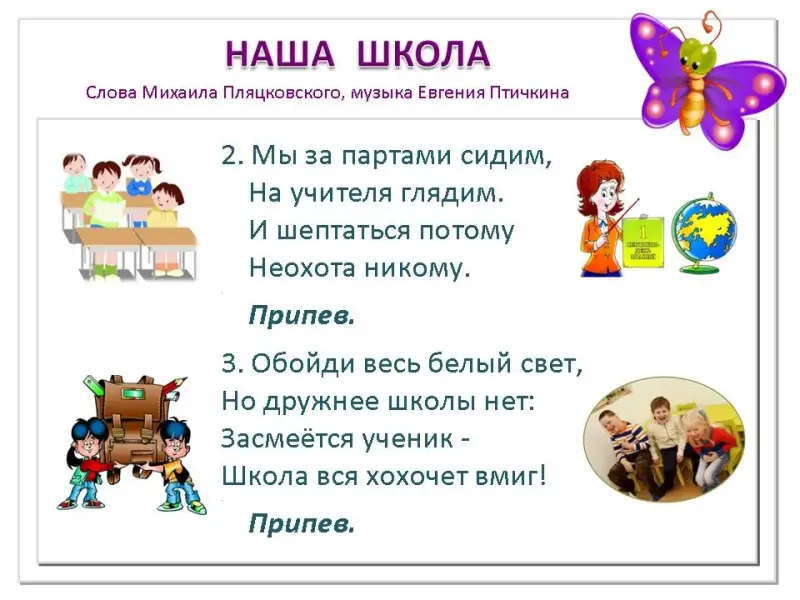 - ноты песни "Наша школа" на сл. М.Пляцковского, муз. Е.Птичкина