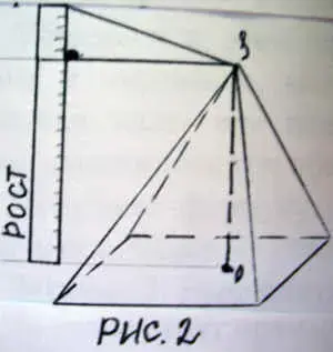 Учитель показывает, как практически измерить высоту ("рост") пирамиды.