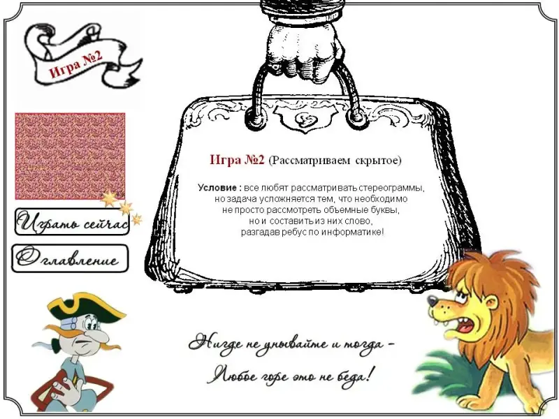 Все дети любят рассматривать стереограммы, к тому же это неплохая тренировка зрения. На этих картинках нужно не только рассмотреть объемные буквы, но и составить из них слово, так или иначе связанное с информатикой! При некоторой тренировке это возможно сделать даже не с печатного листа, а рассматривая изображение на доске.