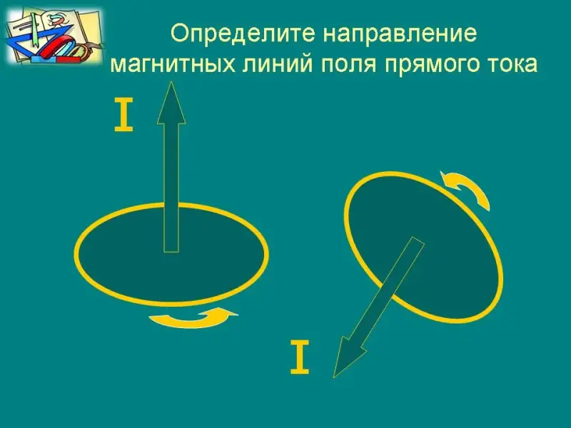 - Изобразите магнитные линии прямого тока и укажите их направление. (Слайд 5)