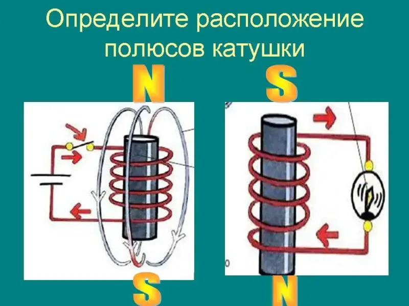 2. Расположение полюсов катушки зависит от направления тока в цепи.