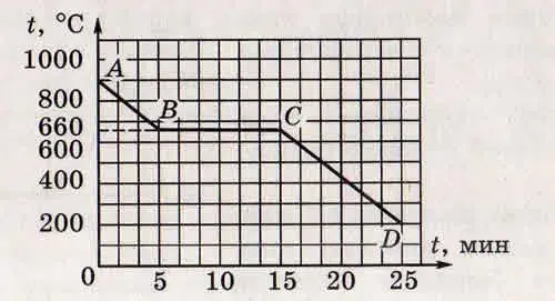 Рисунок 2 - На рисунке 3 дан график изменения температуры алюминиевой детали массой 0,5 кг в зависимости от времени.