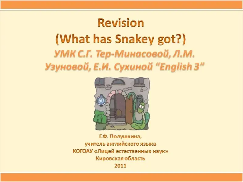 | Тема | «Что есть у Снейки?» - обобщающий урок по теме «Кто это?» | ||