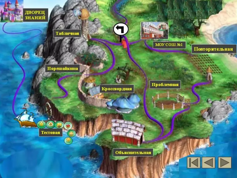 Учитель: (щелчок по Дворцу Знаний - эмблемы переместились туда). Вы прошли все станции на пути к Дворцу Знаний и пополнили свой багаж знаний. Дворец откроет перед вами двери и подарит вам самые высокие оценки. И вы еще не раз туда вернетесь.
