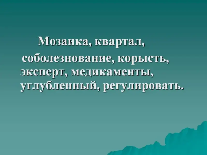 Мозаика, квартал, соболезнование, корысть, эксперт, медикаменты, углубленный, регулировать.