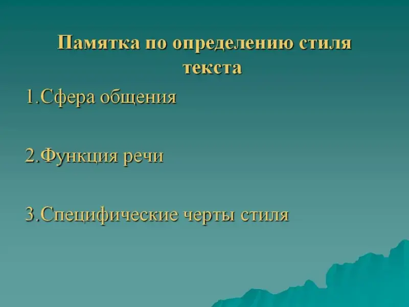 - У вас на столе есть памятка. Сегодня мы будем продолжать учиться определять стиль текста.